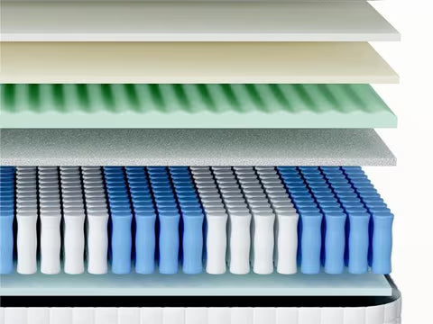 Hybrid Mattress have combine design elements from other mattress types, pairing the coil-based support core of inner springs with a comfort system similar to those found in latex or foam models. This combination mostly provides a balance of pressure relief and receptivity.