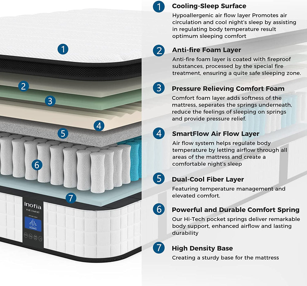 We understand the transformative power of great sleep, which is why we have dedicated years to studying the magic and science behind it since 2015. Inofia's hybrid mattresses have been meticulously designed to enhance the quality of your sleep, allowing you to experience the full benefits of restful slumber. Inofia offers all sizes, including twin, twinxl, full, king, queen size memory foam hybrid mattresses.